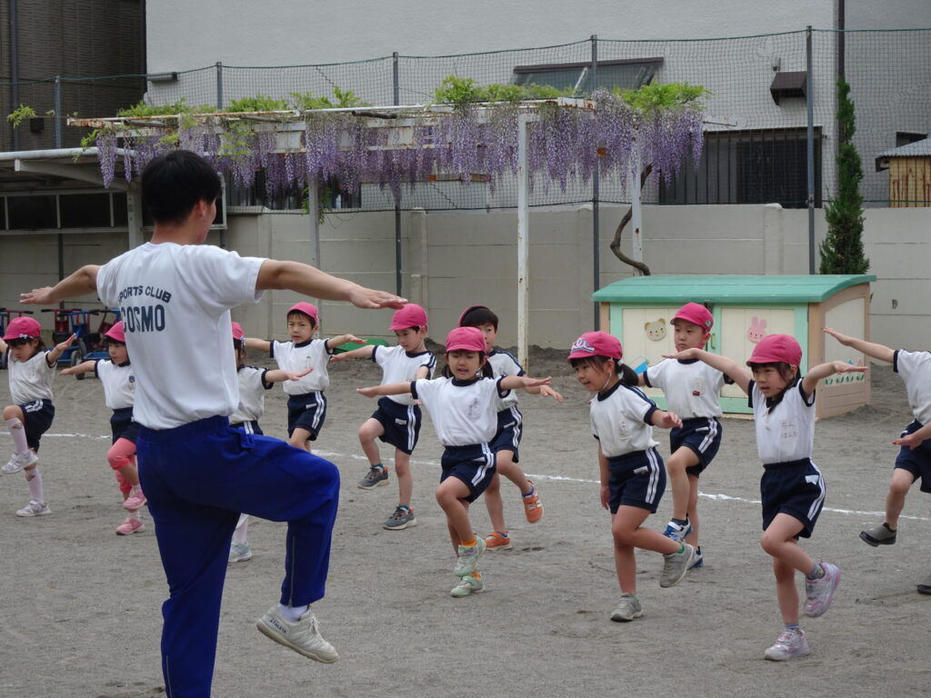 「歩く・走る・跳ぶ・回る・ぶら下がる・投げる」の5つの動きを中心に年齢に応じたカリキュラムに皆で楽しく取り組みます。